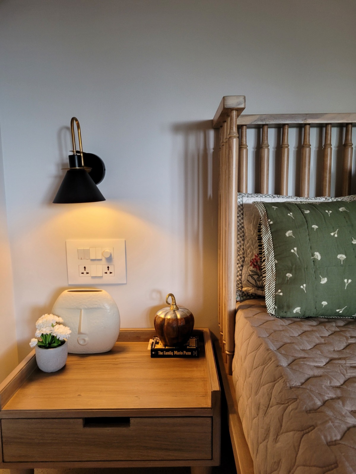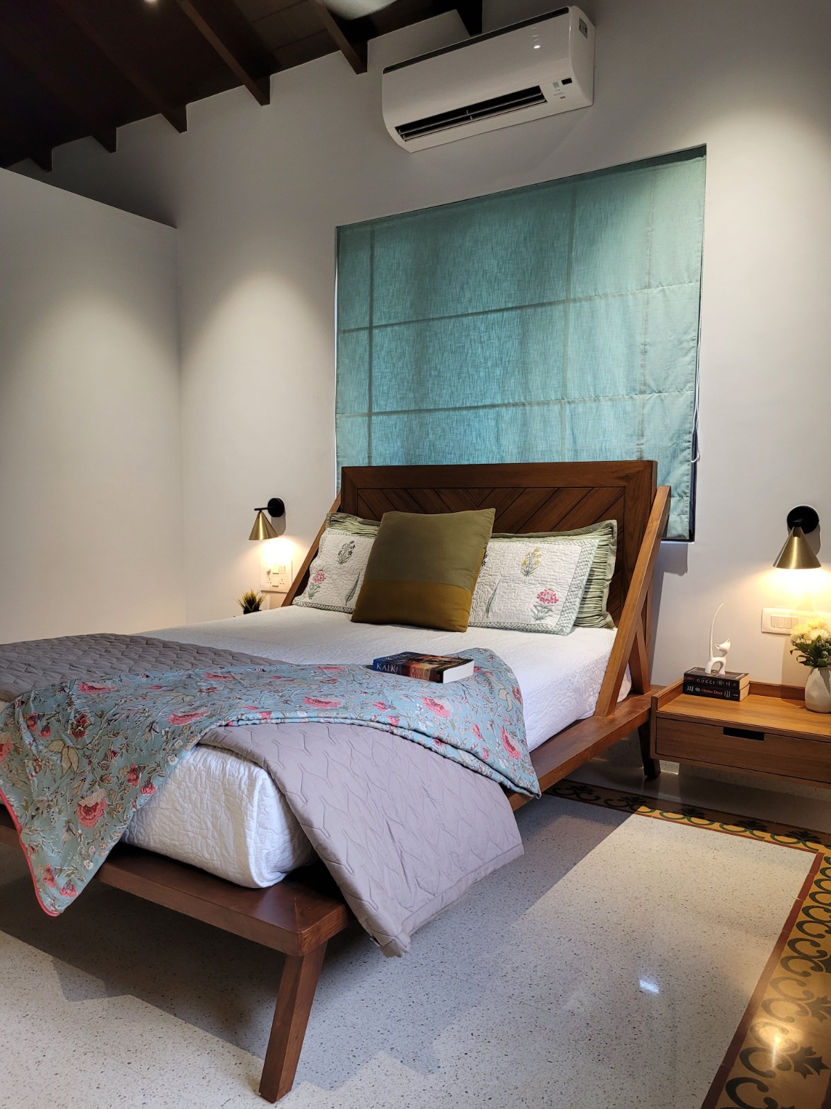 The furniture pieces in the living , dining and bedrooms show off the Earthy Tone Palette that we chose to work with and the designs of the pieces help set a warm and a cosy look of a barn house.